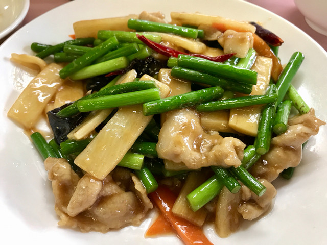 - ニンニクの芽と鶏肉の辛し炒め…970円